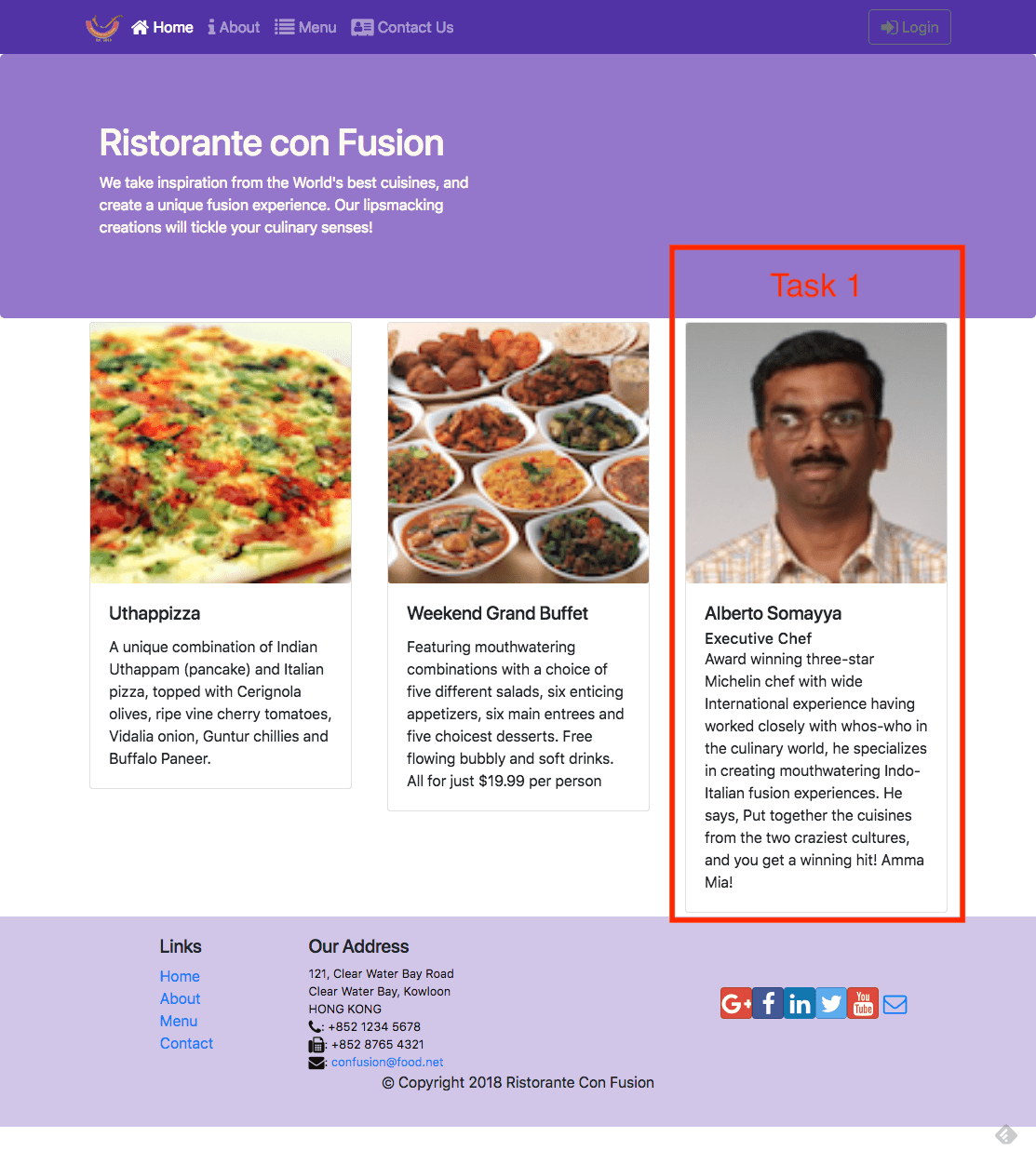 - Update AboutComponent.js to render the leaders information. You should handle the loading and error condition appropriately.
